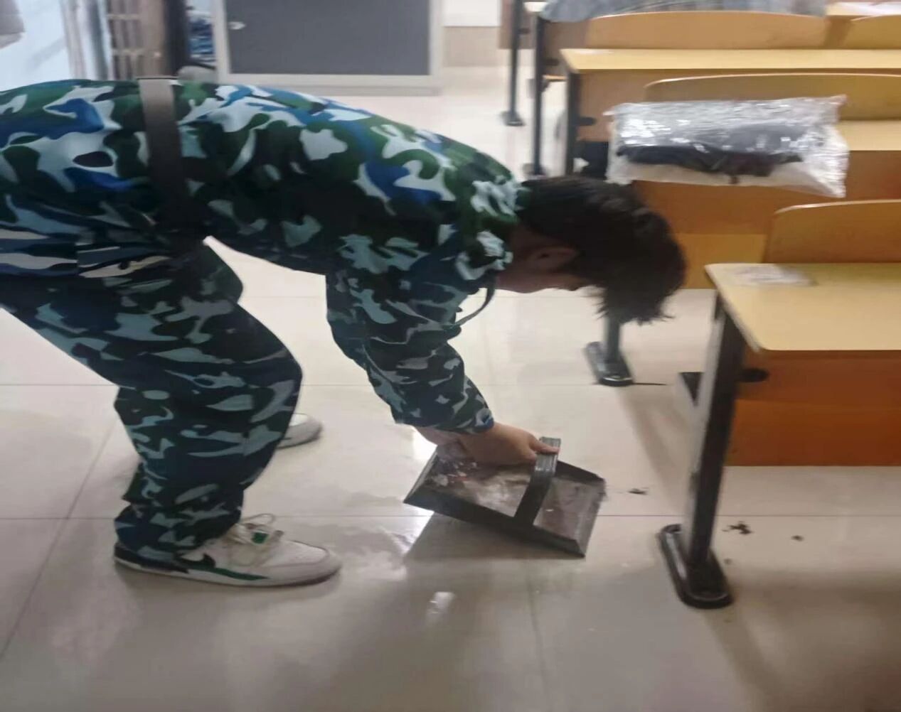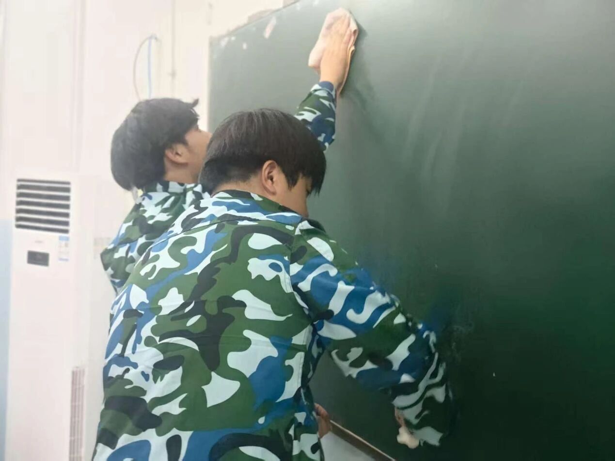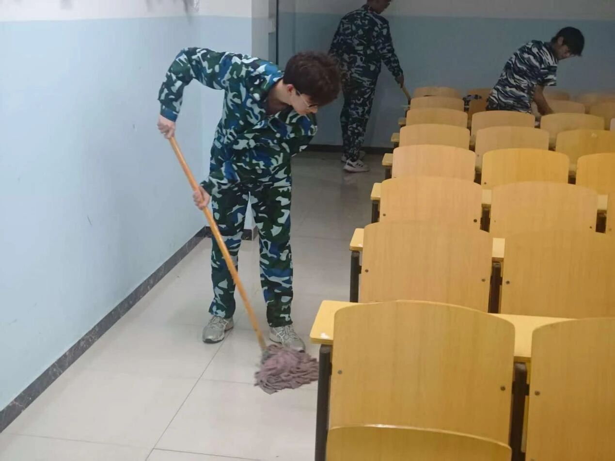 活动以“知行合一、劳动育人”为核心,土木建筑学管中心组织全体2025级新生对中心教学楼教室进行彻底清扫,新生们手持抹布、拖把、扫把、小铲子等清扫工具,分工协作整理教室杂物、规整器材,认真清理地板、教室窗台黑板及桌椅。