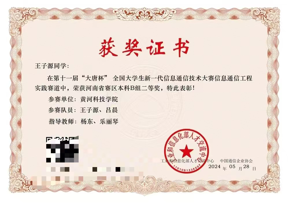 2024年05月荣获全国大学生新一代信息通信技术大赛二等奖;