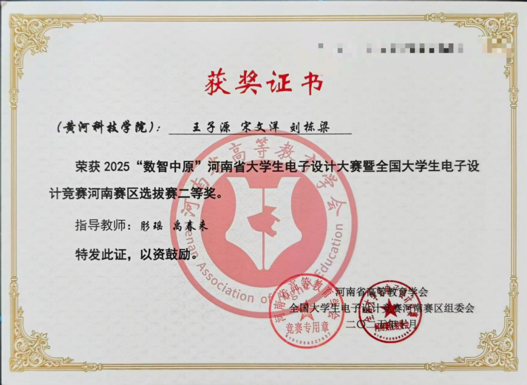 2025年10月荣获全国大学生电子设计大赛二等奖;