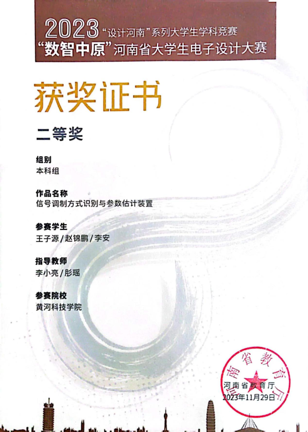 2023年11月荣获全国大学生电子设计大赛二等奖;