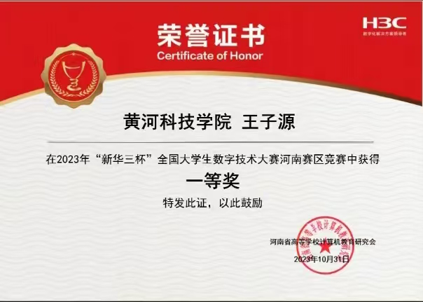 2023年12月荣获全国大学生数字技术大赛一等奖;