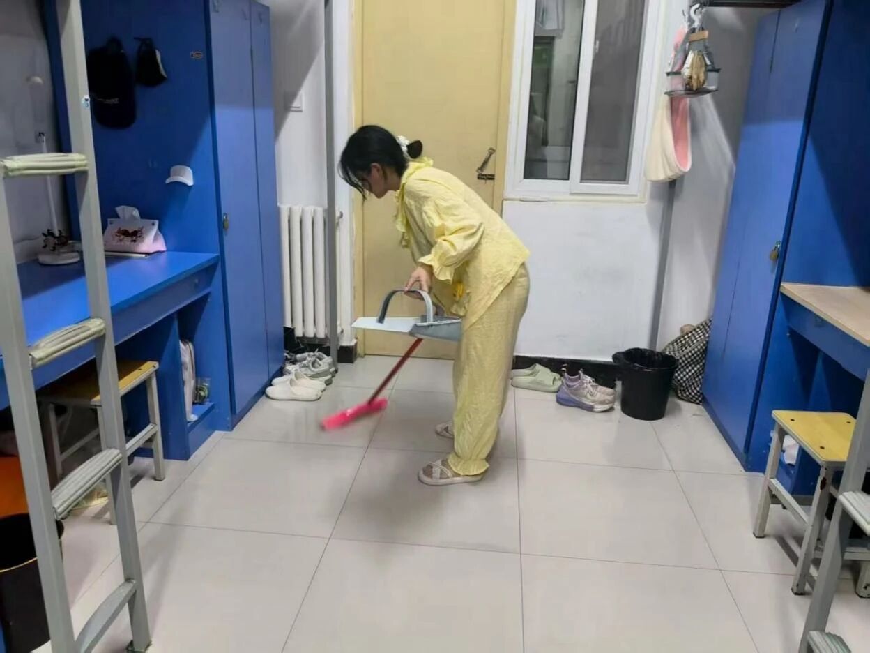 活动过程中,同学们主动参与、分工协作,展现出高度的自觉性和组织性。整理过程中,同学们以高标准严格要求自己:床铺平整、被褥方正,个人物品分类收纳、整齐有序;公共区域如阳台、卫生间、楼道等被彻底清理,无卫生死角。整个过程不仅体现了严谨细致的态度,更展现了团结互助的宿舍文化和集体精神。